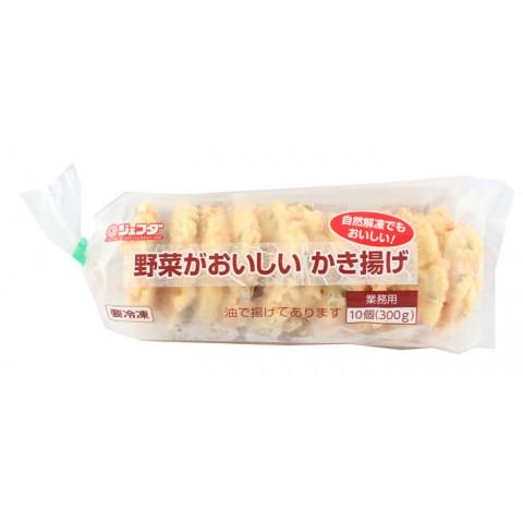 野菜がおいしいかき揚げ(383円)は野菜たっぷりの冷凍のかき揚げが10個も入った商品。