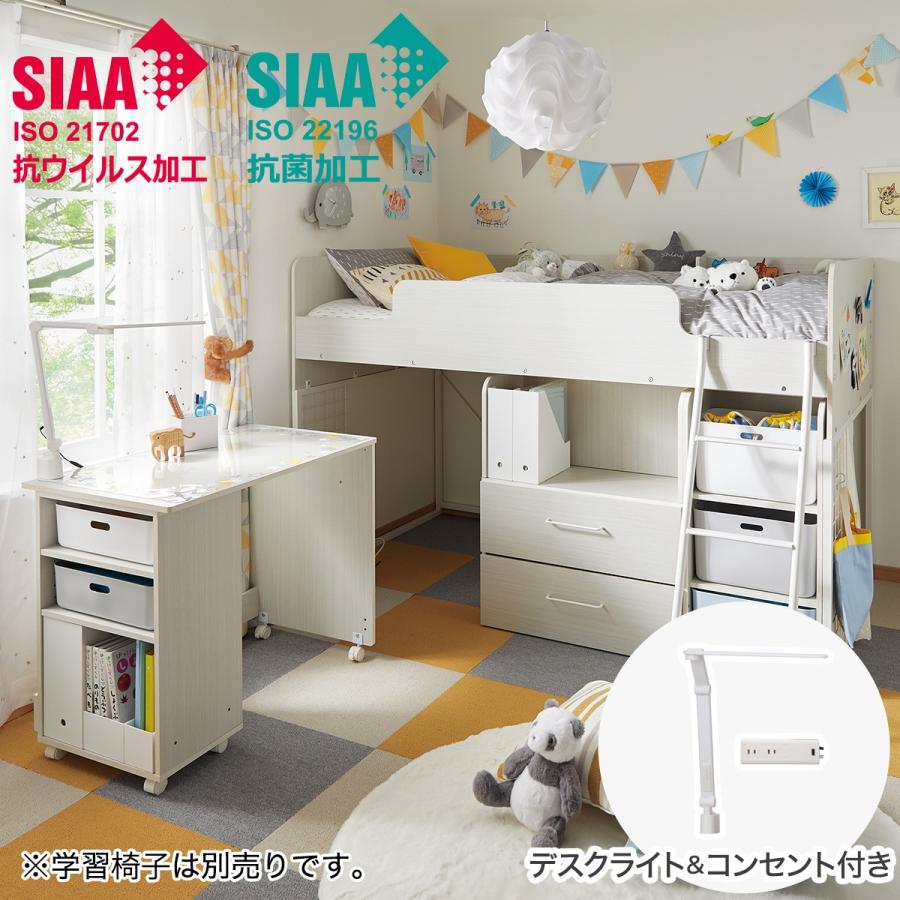 創業祭感謝価格 1月8日まで システムベッドデスク(デニッシュBD23AV ホワイト色ライト+コンセントBOX付きWW/WH) 学習机 学習デスク パソコンデスク ニトリ