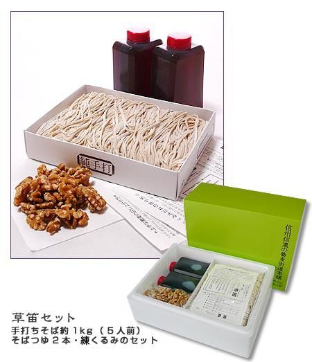 長野の小諸市に本店がある人気蕎麦店・草笛さんの名物「くるみそば」のお取り寄せセットです。