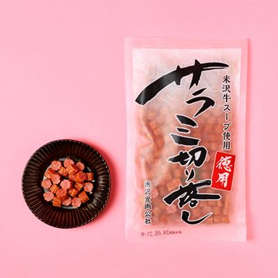 サラミ切り落とし(250g/1260円)は米沢牛のスープを使用したサラミの切り落とし。