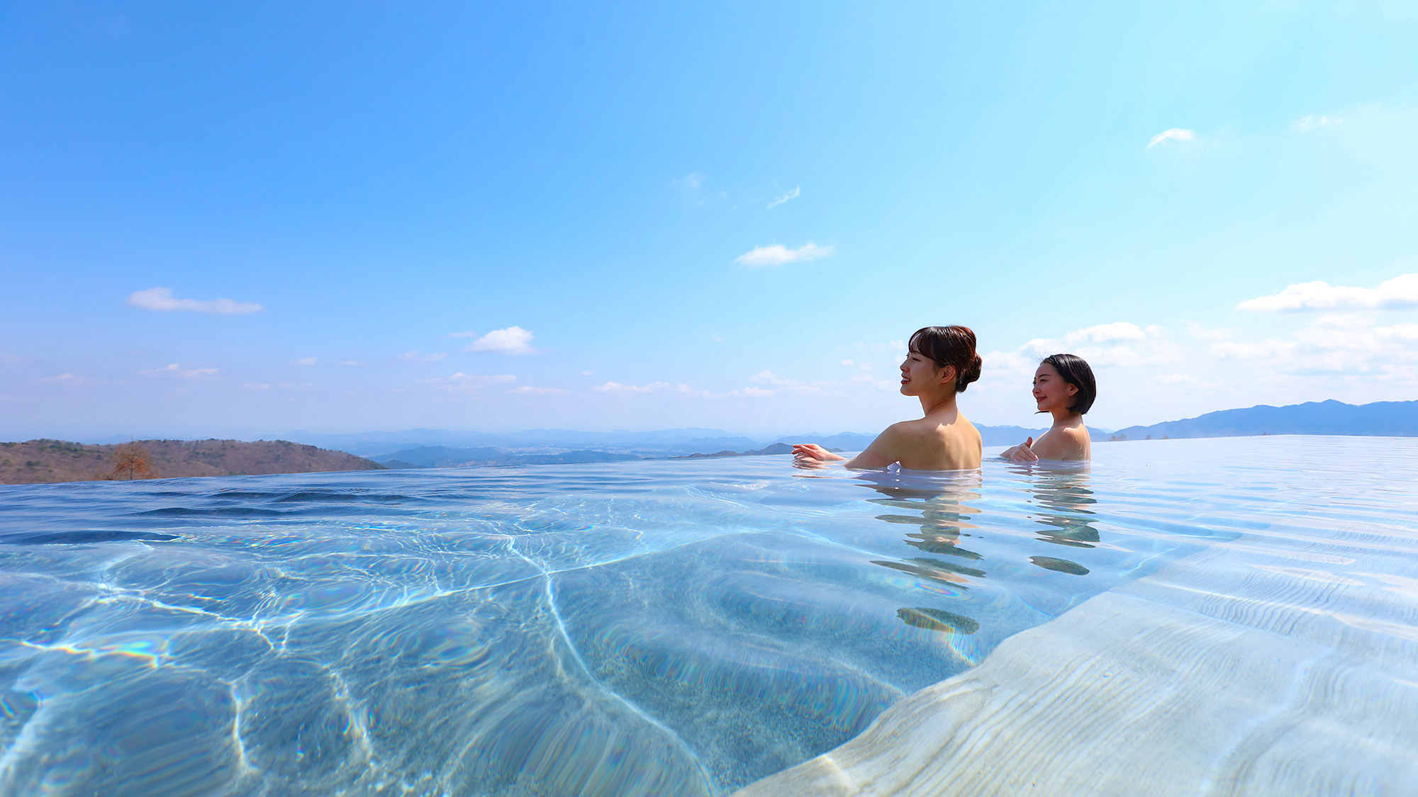絶景のフォレストビューを望めるインフィニティ風呂は仕切りがなく自然に溶け込むよう。