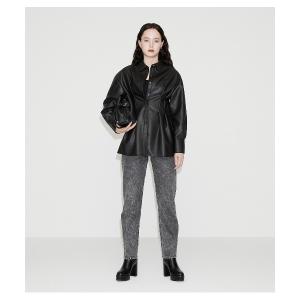 ヴィーナスパンツに合わせるのがブラックのエコレザー【ウエストタック フェイクレザーシャツ(7150円)】。