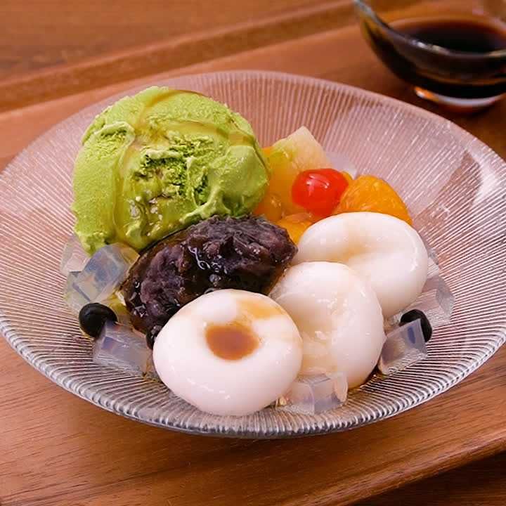 白玉粉に絹ごし豆腐を混ぜることで冷やしてもやわらかい白玉になります。