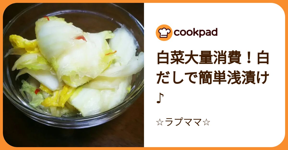 「白菜大量消費!白だしで簡単浅漬け♪」の作り方。白菜救済レシピ!少ない調味料で簡単に作れます♪止まらない美味しさ☆ご飯のお供、お茶請け常備菜にも♪人気検索1位に感謝☆ 材料: 白菜、白だし、しょう油