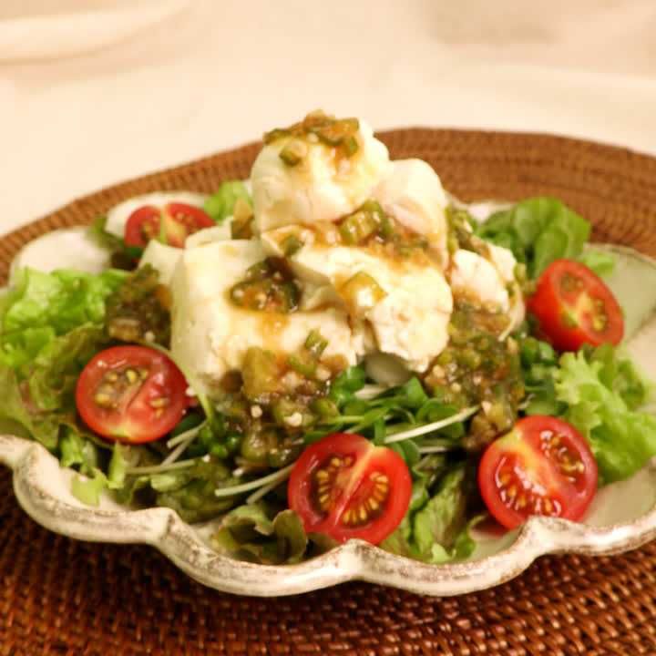 ネバネバがからむ! くずし豆腐のオクラサラダのレシピ動画・作り方 | デリッシュキッチン