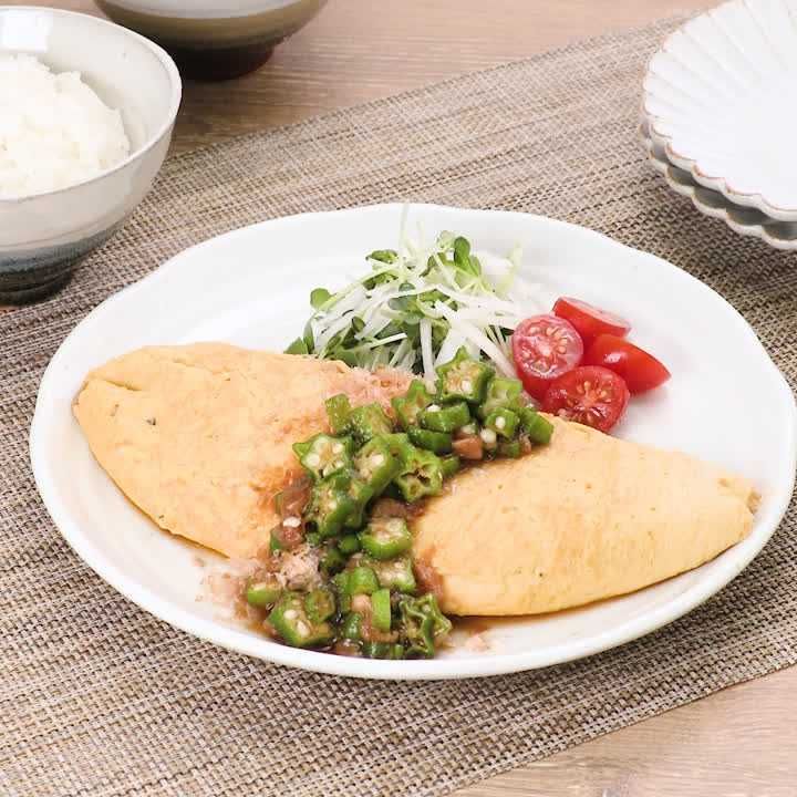 納豆入りのオムレツに、さっぱりとした梅オクラだれをかけました!ねばねば好きにはたまらない、やみつきになる一品です♪お好みでチーズを包んで焼くのもおすすめです!