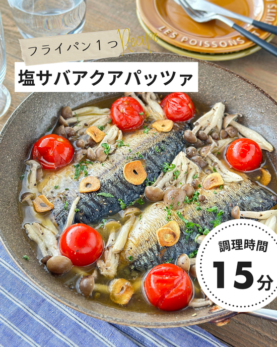 お財布にも優しく手軽に買える塩サバを使用したアクアパッツァです。